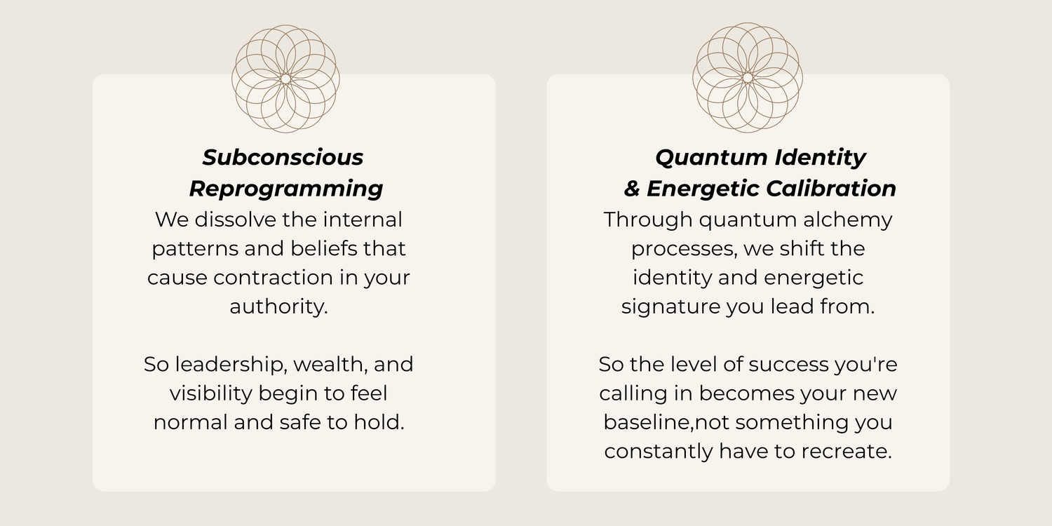 Subconscious reprogramming, energetics and quantum alchemy so you become the woman who holds her authority and receives wealth effortlessly